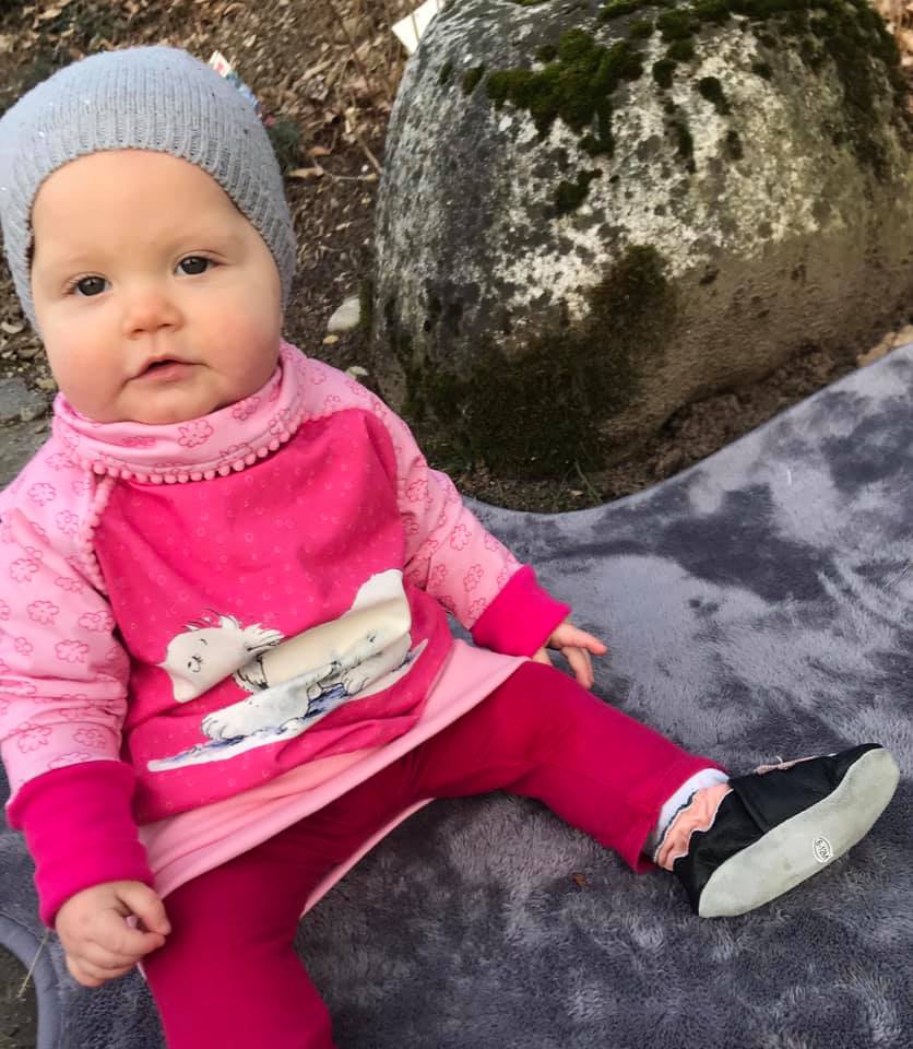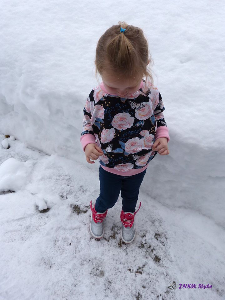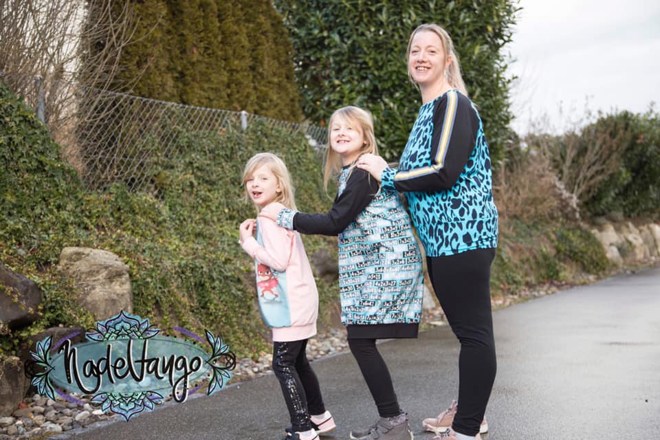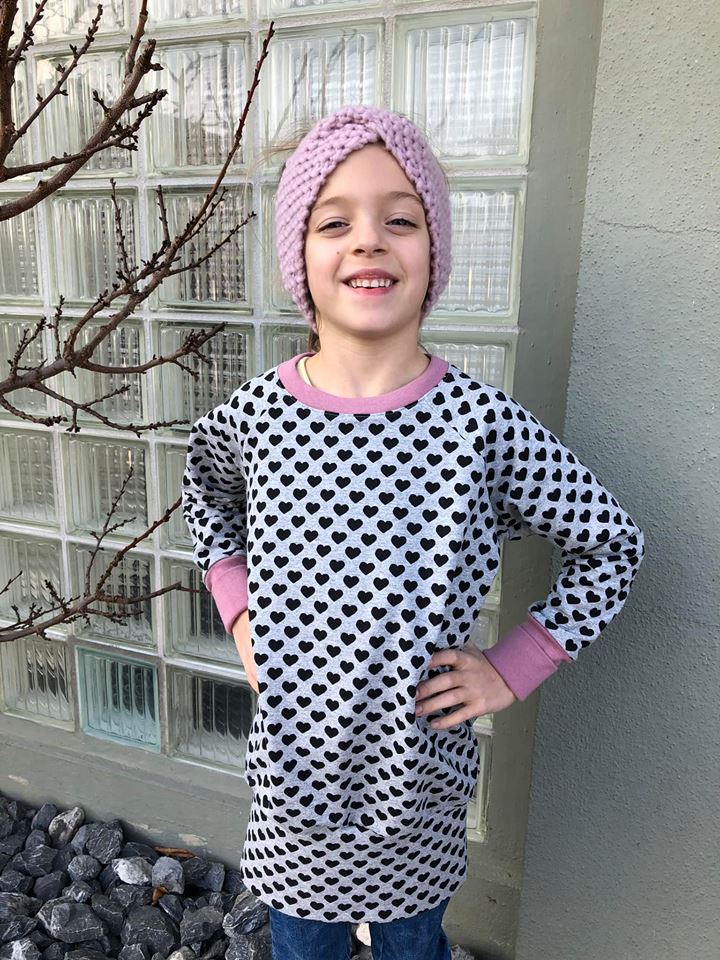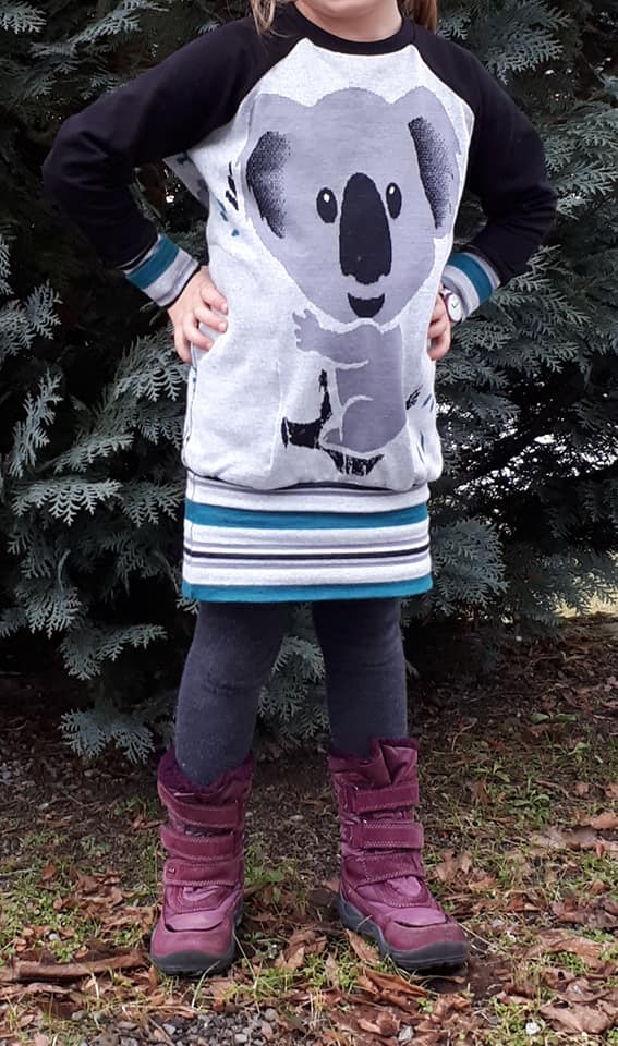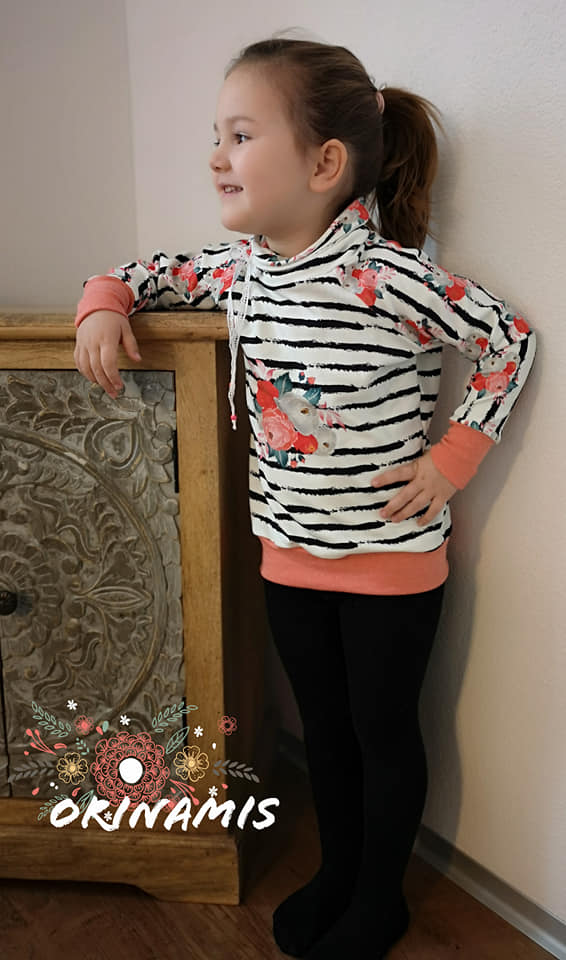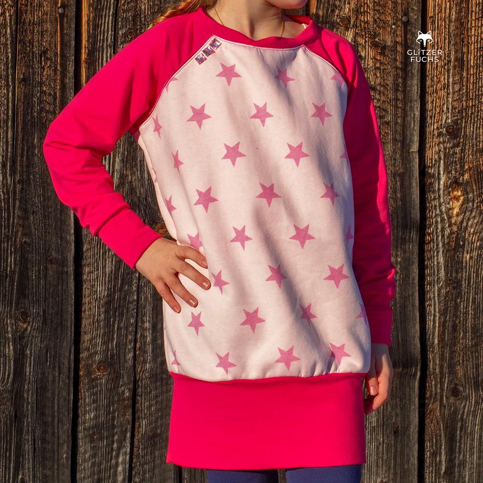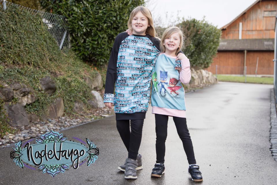 Was mir an diesem Schnitt aber besonders gefällt, ist die Vielseitigkeit von diesem Ebook. Man kann den Raglanpullover sehr gut verlängern und einen Raglanlongpullover daraus machen. Ich verlängere jeweils 25 cm, damit man den Raglanlongpullover mit Leggings tragen kann, dies ist aber Geschmackssache. Auch entscheidest du, ob du das schmale oder das breite Bündchen zum Abschliessen benutzt. Wir haben beim Probenähen den Pullover sehr viel verändert und die letzte Änderung ist der Kragen. So ist er ein richtig kuschliger Raglanpullover, den man für alles tragen kann.