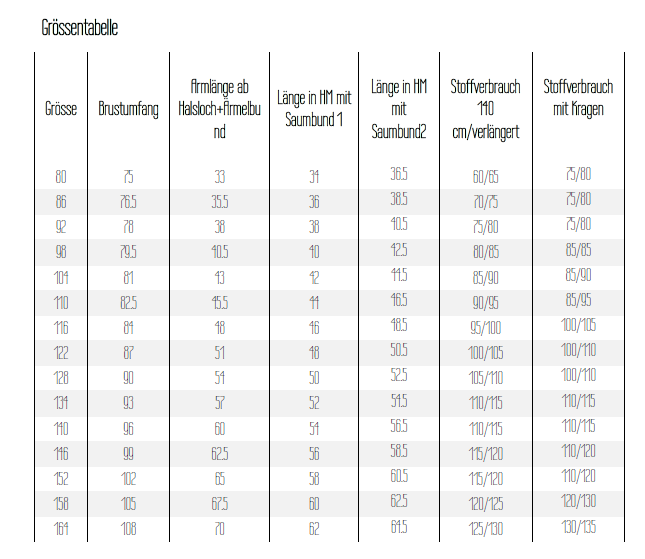 Das Schnittmuster beinhaltet bereits 1 cm Nahtzugabe. Zu beachten ist, dass die Ärmel je nach Länge gekürzt oder verlängert werden müssen.